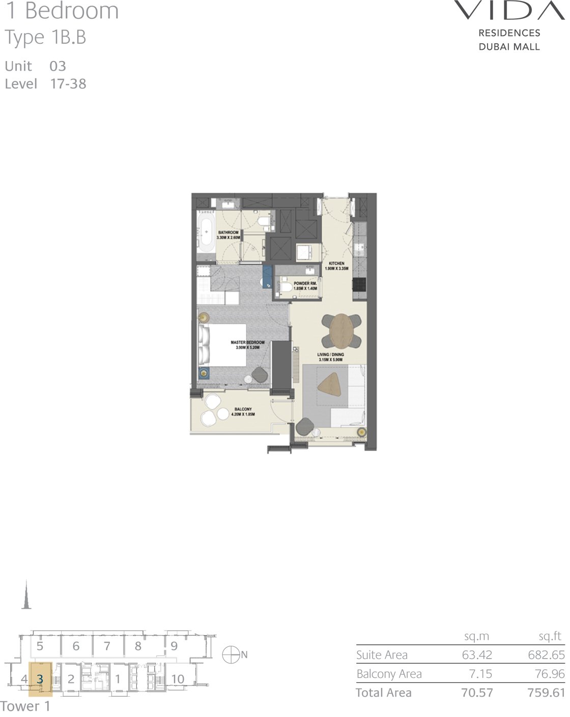 Vida Residences Dubai Mall it takes roughly 5 minutes to drive to Dubai Mall, 19 minutes to Palm Jumeirah, 18 minutes to Burj Al Arab and 23 minutes to The Walk JBR. Dubai International Airport (DXB) is roughly 15 minutes; drive and the new Al Maktoum International Airport is roughly 42 minutes; drive.